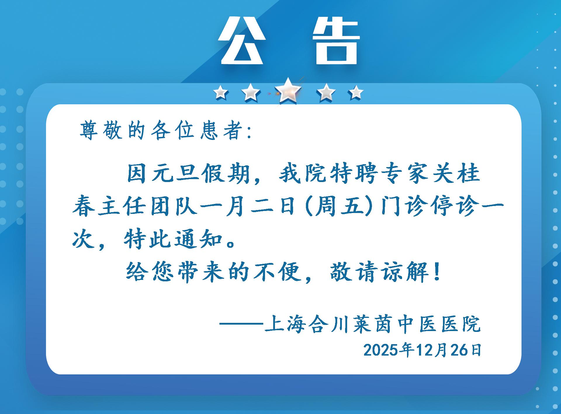 公告 | 关桂春教授元旦假期临时停诊通知