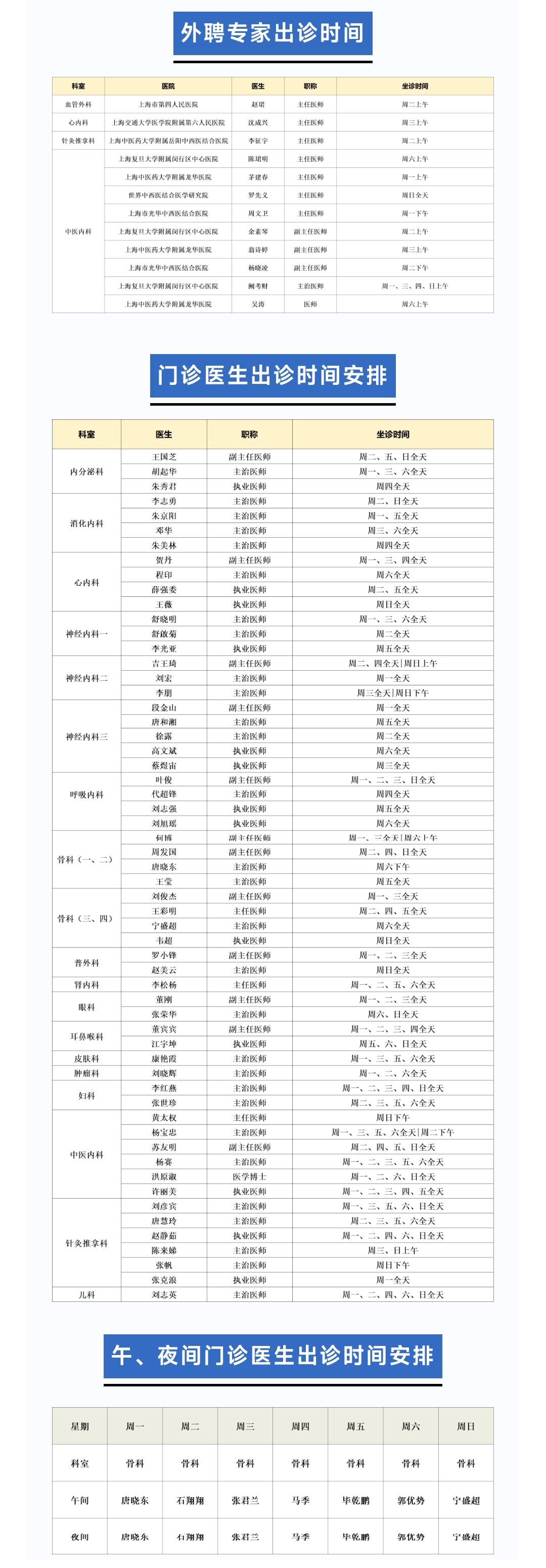 出诊早知道丨1月门诊医生出诊一览表(12.29 - 1.4)