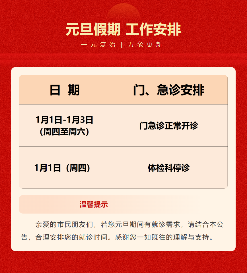 工作安排 | 元旦假期,我院门急诊为您健康护航!