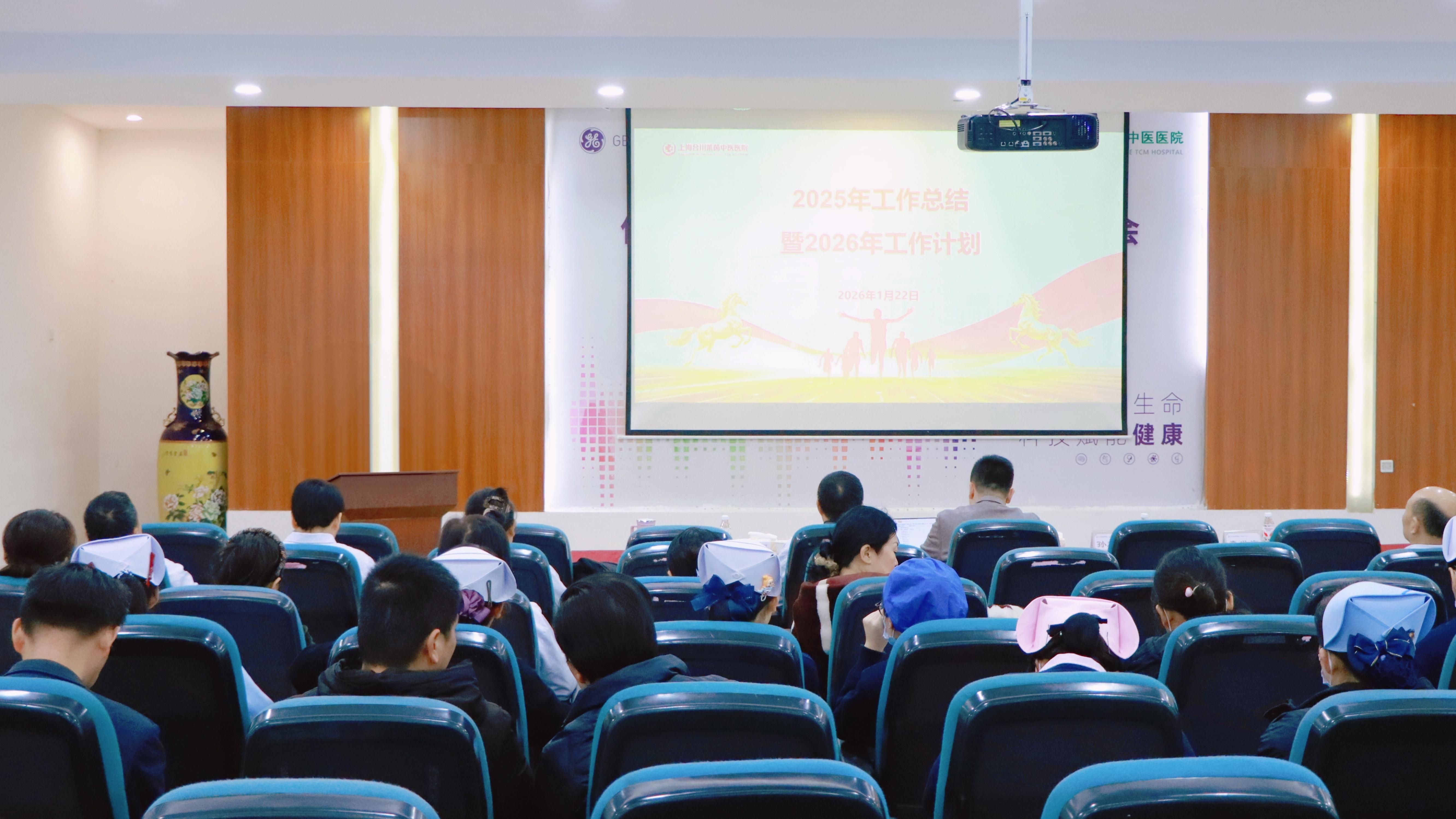 为全面检视医院各临床、医技及职能科室 2025 年的工作成效,持续强化中层干部队伍建设,明确 2026 年工作目标与重点任务,推动医疗质量和服务能力再上新台阶,上海合川莱茵中医医院于 1 月 22 日组织召开了 2025 年工作总结会议。院领导班子成员、全体中层干部以及护士长参加会议,会议由行政副院长陈世萍主持。