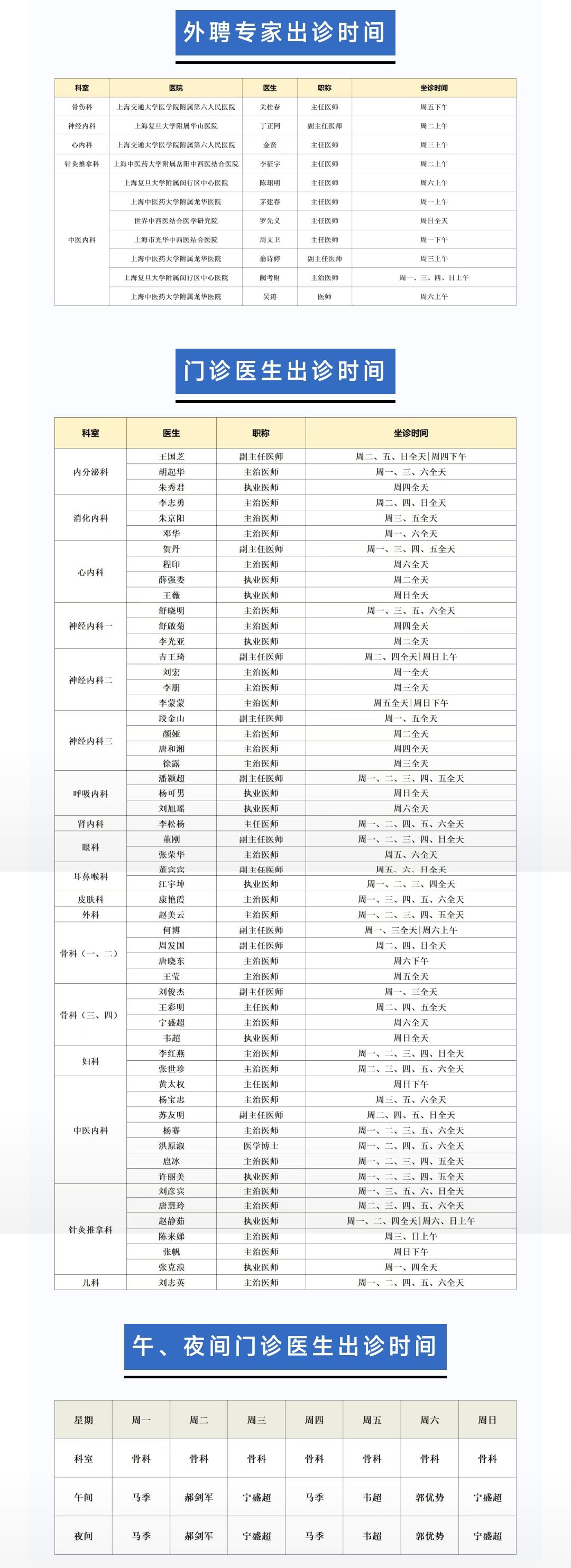 出诊早知道丨3月门诊医生出诊一览表(3.02 - 3.08)
